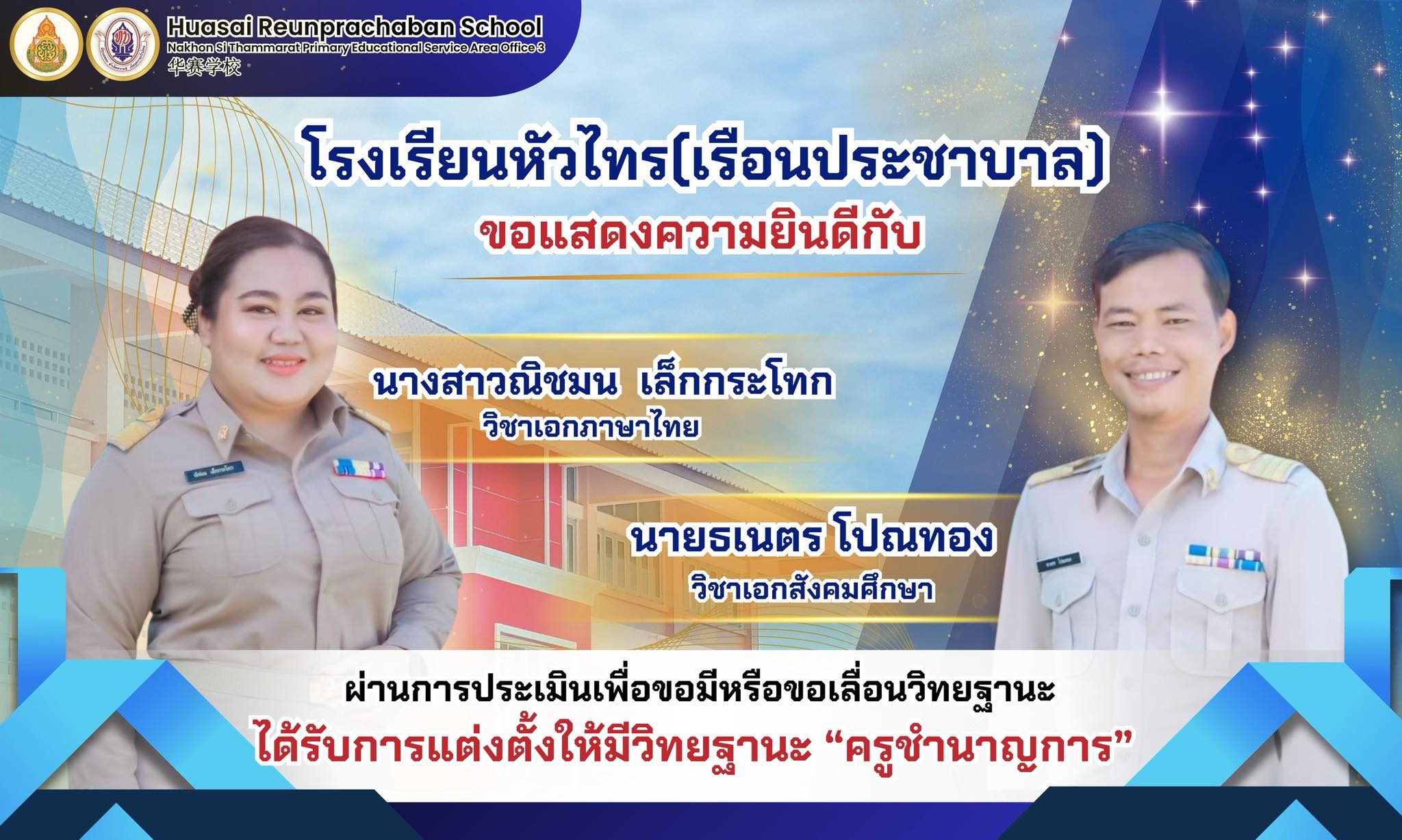 โรงเรียนหัวไทร (เรือนประชาบาล) ขอแสดงความยินดีกับผู้ที่ได้รับการแต่งตั้งให้มีวิทยฐานะ "ครูชำนาญการ" นายธเนตร โปณทอง — วิชาเอก สังคมศึกษา และนางสาวณิชมน เล็กกระโทก — วิชาเอก ภาษาไทย