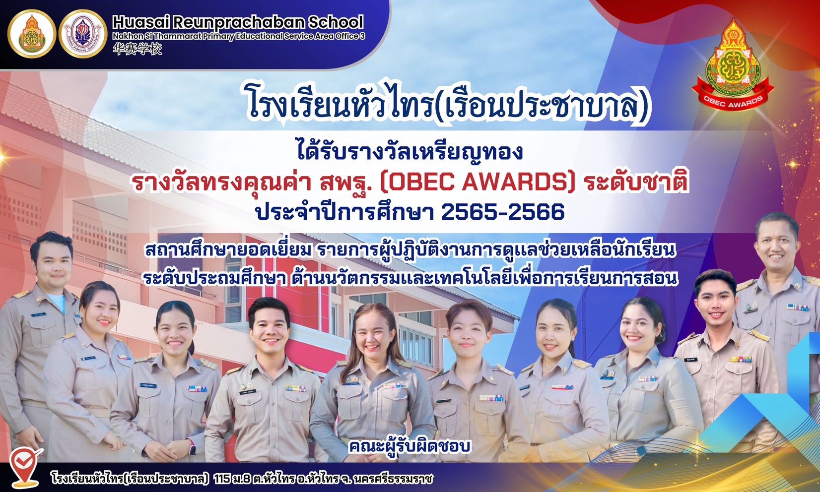 โรงเรียนหัวไทร(เรือนประชาบาล) ได้รับ รางวัลเหรียญทอง รองชนะเลิศอันดับ 1 รางวัลทรงคุณค่า สพฐ. (OBEC AWARDS) ระดับชาติ ประจำปีการศึกษา 2565 – 2566 ประเภท สถานศึกษายอดเยี่ยม รายการผู้ปฏิบัติงานการดูแลช่วยเหลือนักเรียน ระดับประถมศึกษา