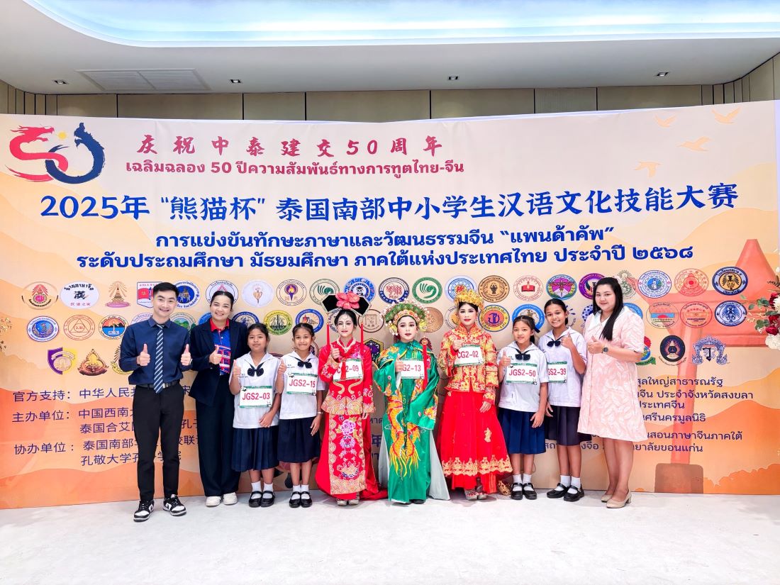 นางสาว พลอยรัฐ รัตนศรีปัญญะ รองผู้อำนวยการ นายเกียรติสรณ์ ก้อชนะ และ นางสาวอทิตยา เกิดเขียว ครูผู้รับผิดชอบภาษาจีน นำนักเรียนจำนวน 10 คน เข้าร่วมการแข่งขันทักษะภาษาและวัฒนธรรมจีน “แพนด้าคัพ” ระดับประถมศึกษา–มัธยมศึกษา ภาคใต้