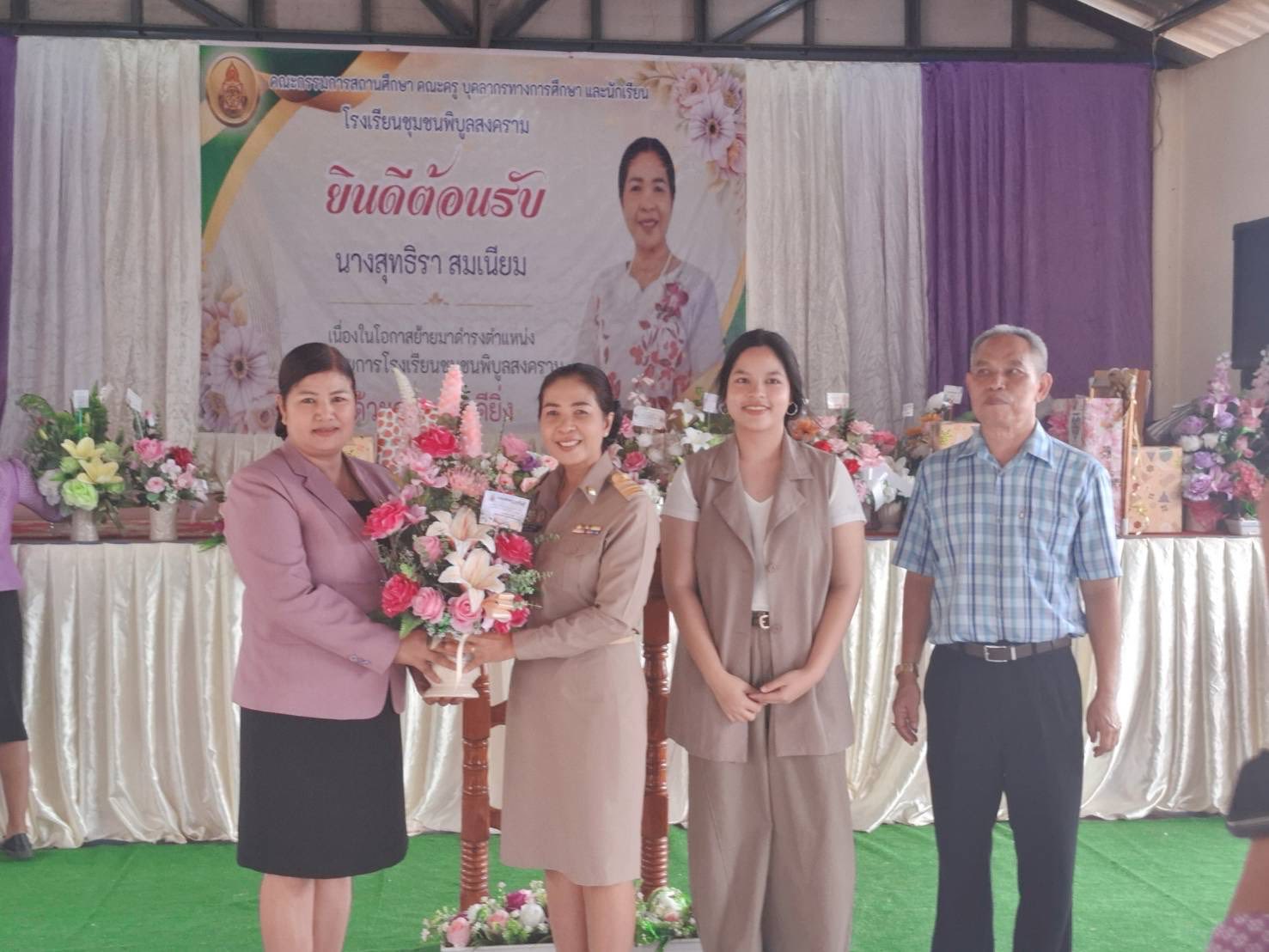 ดร.อาภรณ์ อ่อนคง ผู้อำนวยการโรงเรียนหัวไทร(เรือนประชาบาล) ร่วมแสดงความยินดีและต้อนรับ นางสุทธิรา สมเนียม ในโอกาสที่ได้รับการแต่งตั้งให้ดำรงตำแหน่งผู้อำนวยการโรงเรียนชุมชนพิบูลสงคราม