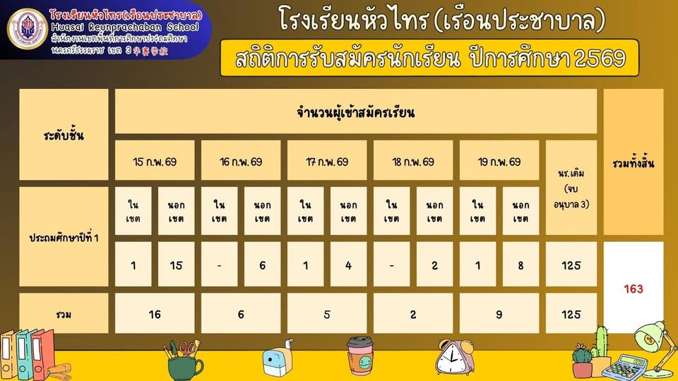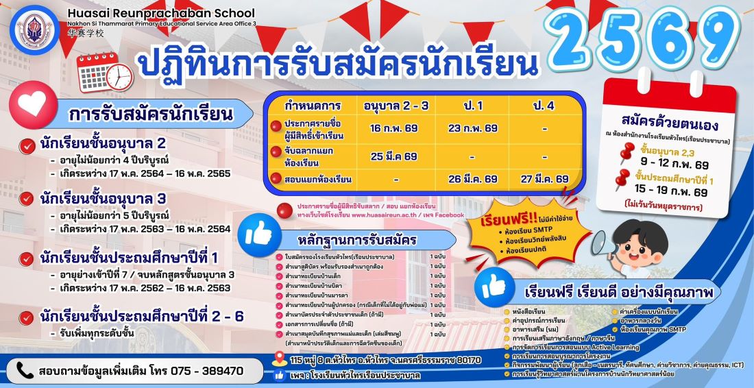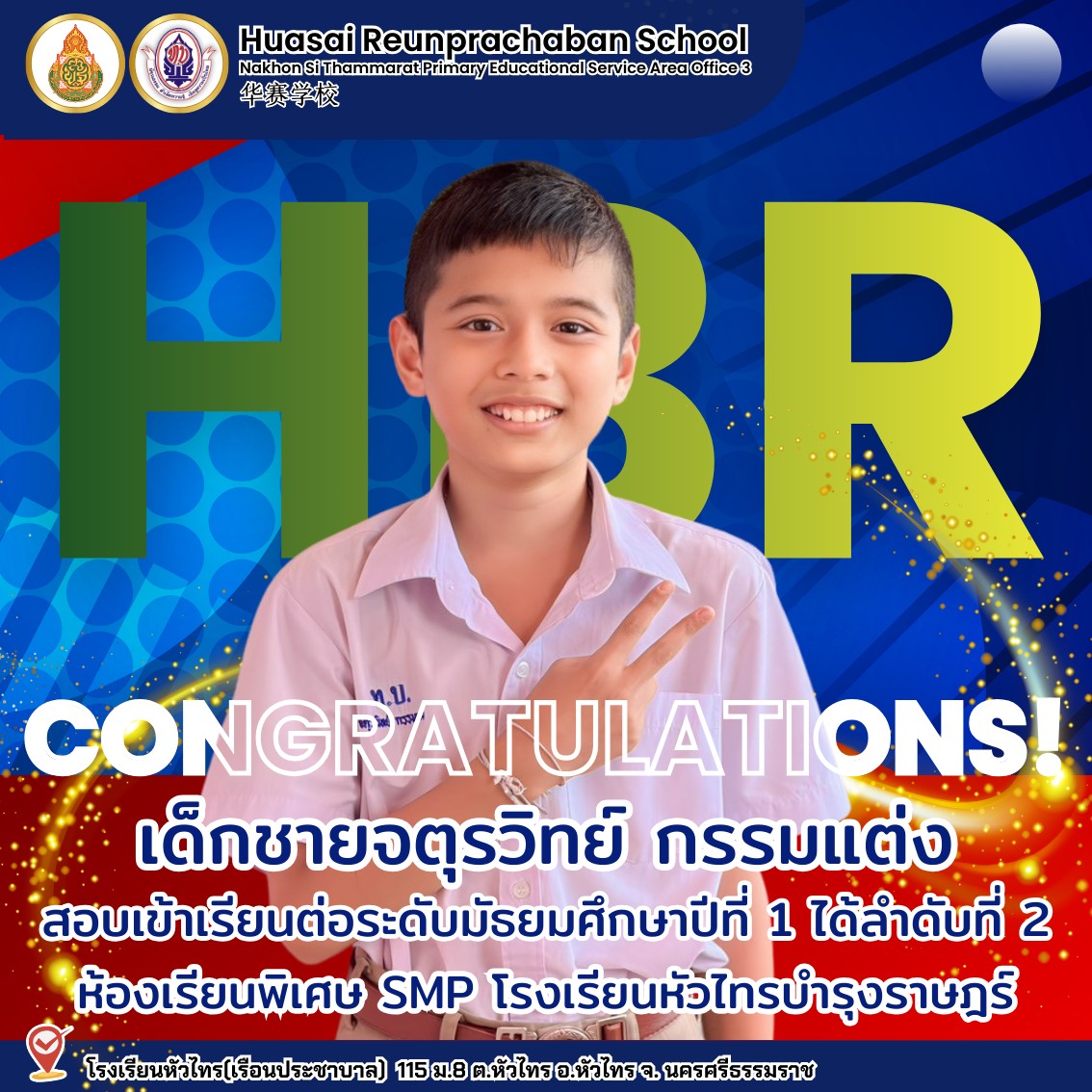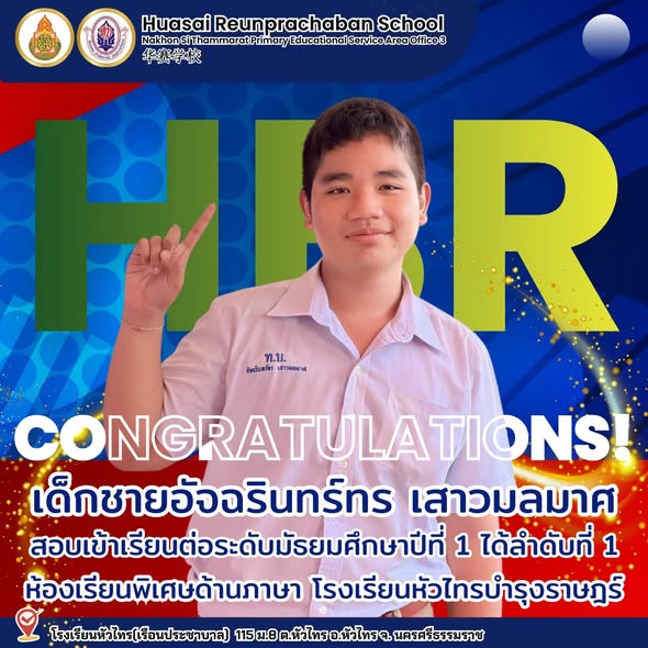 ขอแสดงความยินดีกับนักเรียนคนเก่ง ชั้นประถมศึกษาปีที่ 6 สอบได้เข้าศึกษาต่อระดับชั้นมัธยมศึกษาปีที่ 1 โครงการส่งเสริมความเป็นเลิศด้านภาษาต่างประเทศ โรงเรียนหัวไทรบำรุงราษฎร์