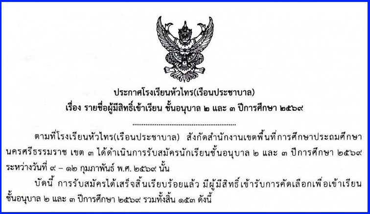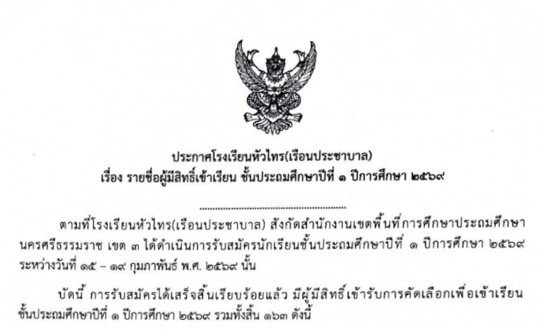 โรงเรียนหัวไทร(เรือนประชาบาล) ขอแสดงความยินดีกับนักเรียนคนเก่ง นักเรียนโรงเรียนหัวไทร(เรือนประชาบาล) เข้ารับเกียรติบัตรโครงการส่งเสริมการศึกษา ปีการศึกษา 2568 ณ หอประชุมวารีภุชงค์ โรงเรียนปากพนัง