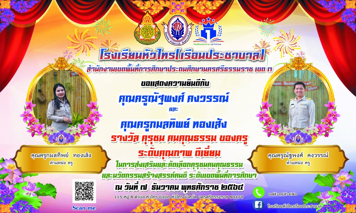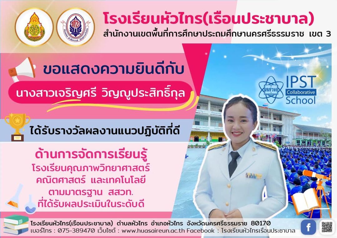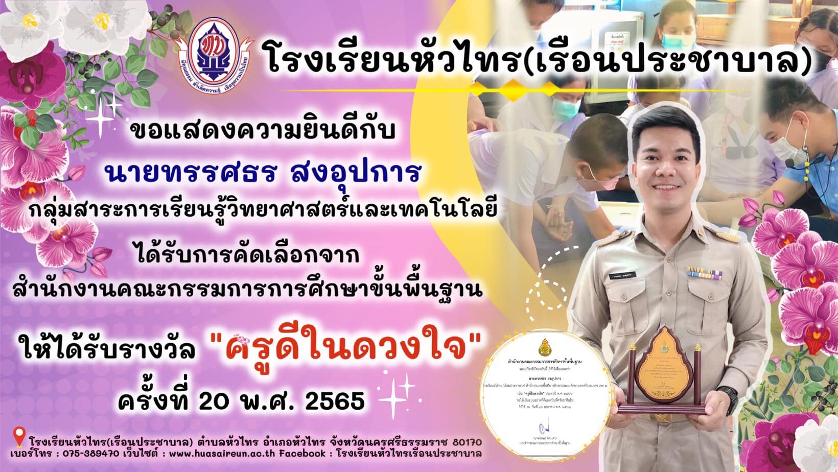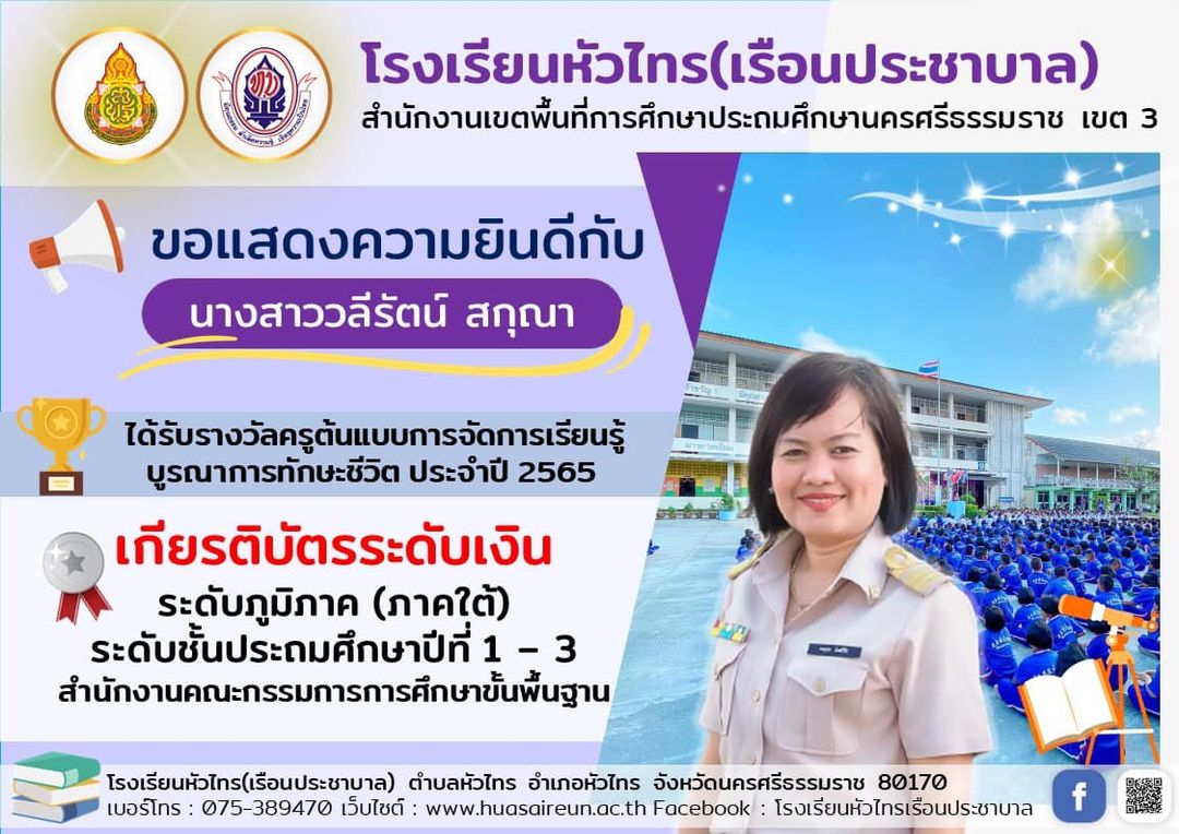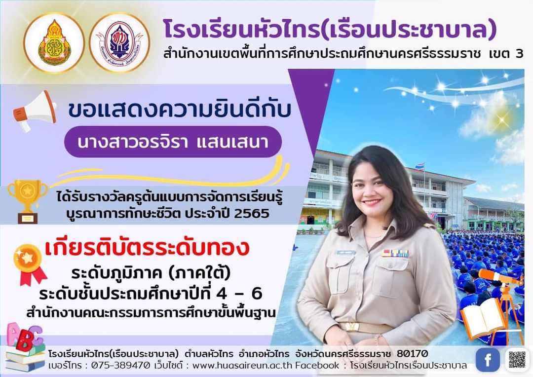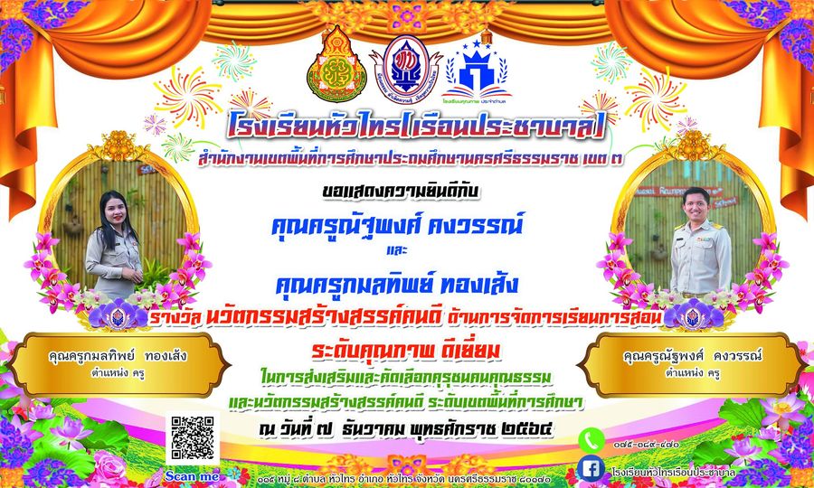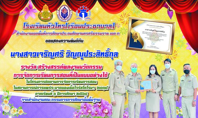 สร้างสรรค์ผลงานนวัตกรรมการจัดการเรียนการสอนที่เป็นแบบอย่างได้ ในโครงการติดตามการจัดการเรียนการสอนในสถานการณ์การแพร่ระบาดของเชื้อไวรัสโคโรนา 2019 ภาคเรียนที่ 1 ปีการศึกษา 2564 จากสำนักงานคณะกรรมการการศึกษาขั้นพื้นฐาน |
